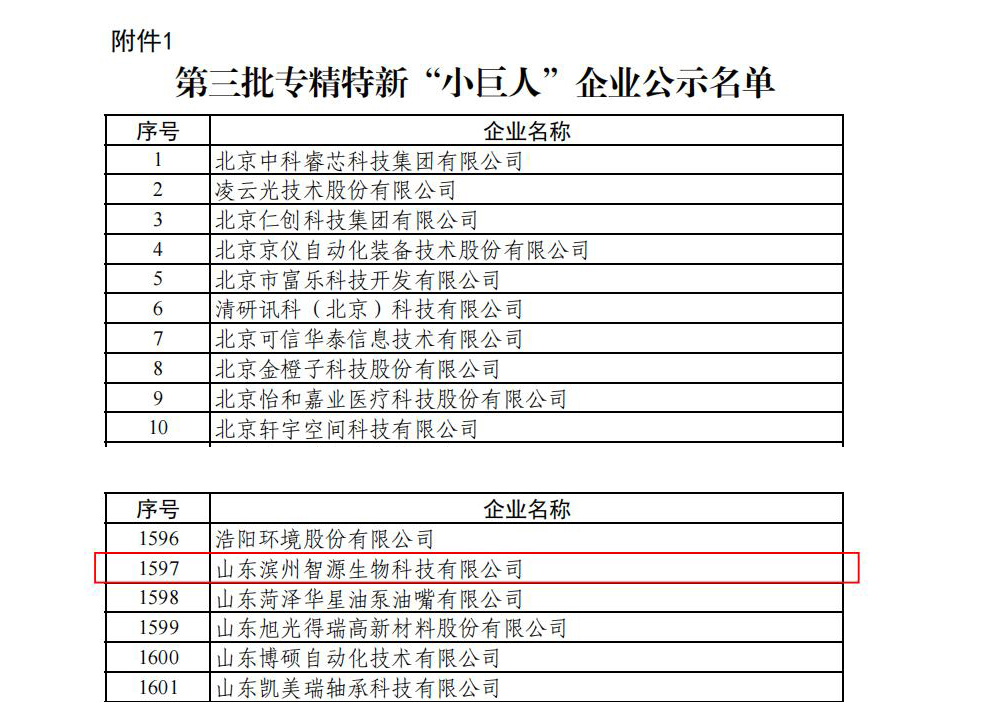 2021年7月19日,是山東濱州智源生物科技有限公司成立11周年紀(jì)念日。也就在同一天,工業(yè)和信息化部公布第三批專精特新“小巨人”企業(yè)名單,智源生物榮耀上榜,可謂雙喜臨門、喜上加喜。
